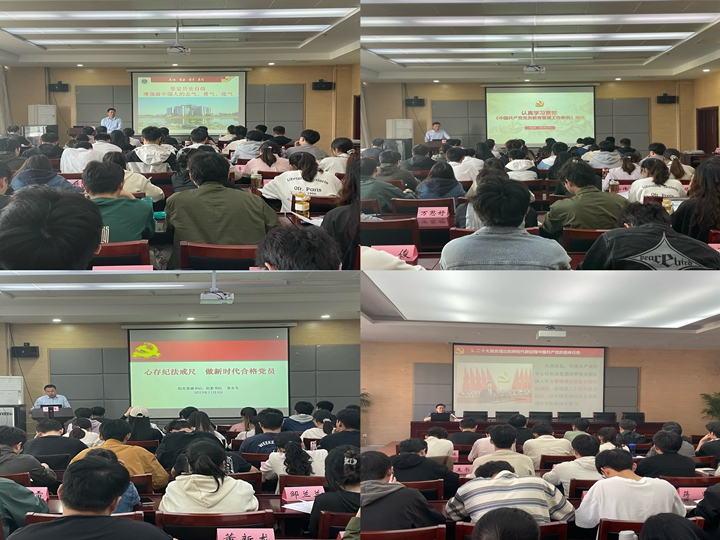 专题培训,筑牢思想根基。培训期间,为帮助学员更深入地学习了解党的理论知识,学院分党校邀请多位老师开展深层次理论专题辅导讲座。学校宣传部副部长王少仁讲授了《坚定历史自信,增强做中国人的志气、骨气、底气》辅导报告;学校党委组织部组织科科长李高举带领学员学习了《中国共产党党员教育管理工作条例》精神;李娟以《学习贯彻新党章、奋斗时代新征程》《党员的权利和义务》为题为学员作了专题讲座;黄友生作了题为《心存纪法戒尺,做新时代合格党员》专题讲座;学院电子信息工程专业系主任、教授、博士生导师刘小明讲授了《坚定信念、树立理想、厚聚电能,全身心投入全面建成社会主义现代化强国》辅导报告;陶绪德作了题为《中国共产党的光辉历程》专题辅导报告。