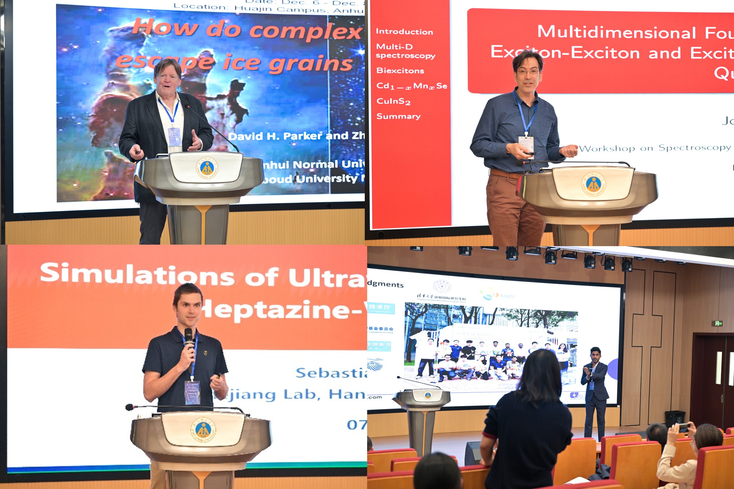 会议日程安排紧凑丰富,内容涵盖了凝聚态体系量子动力学、半导体材料载流子动力学、基质隔离复合物光谱、气固表界面光物理机制、态分辨气相分子反应动力学及基元反应的量子调控等多个前沿领域。David Parker、Yujin Tong、Safakath Karuthedath、John McGuire、Sebastain Pios、王兴安、曾小庆、赵瑾、肖春雷、杨天罡、陆洲等多位国内外专家学者分别作大会学术报告。会议期间,与会专家就领域内的重大科学问题与未来发展趋势展开了热烈讨论与细致谋划。