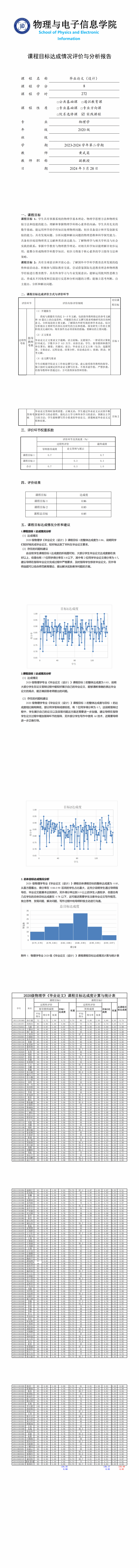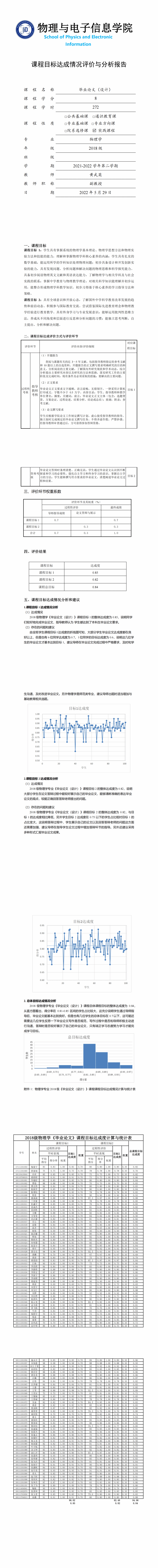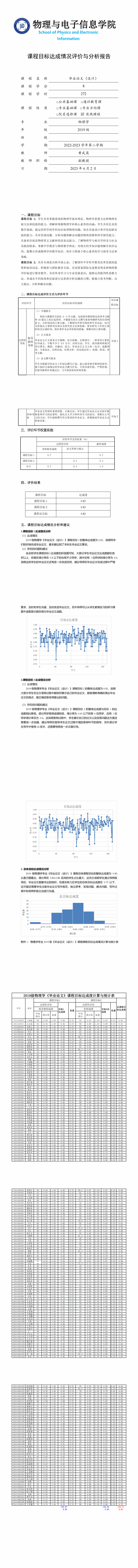 3.5毕业论文三学期的课程目标达成评价与分析报告
