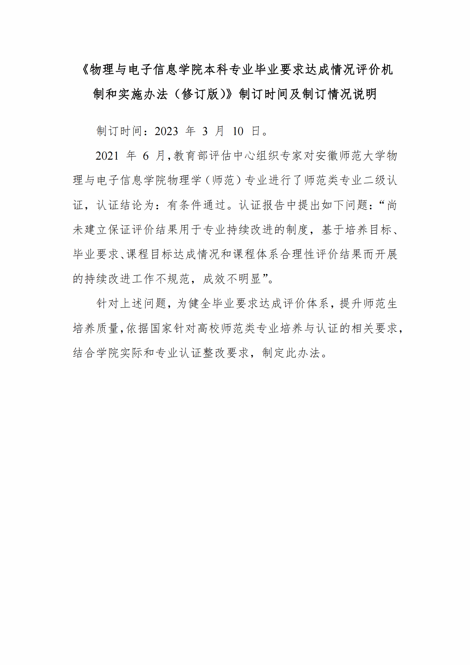《必赢线路检测3003no1本科专业毕业要求达成情况评价机制和实施办法(修订版)》及制订情况说明