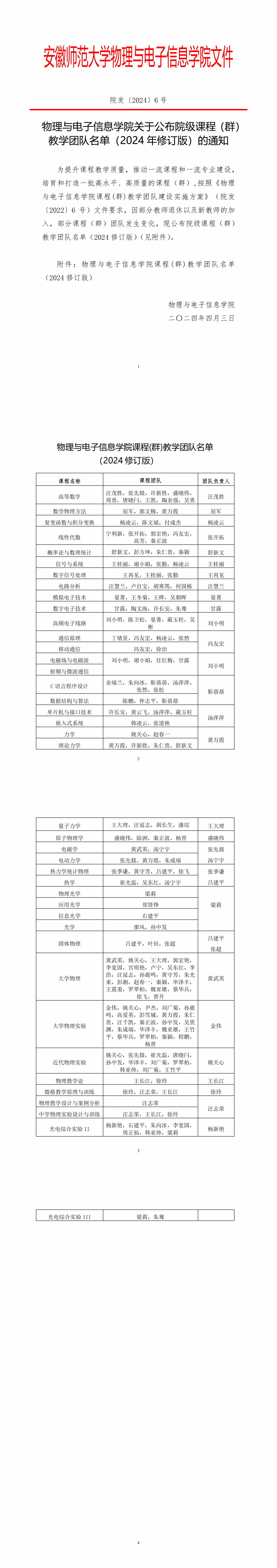 《必赢线路检测3003no1关于公布院级课程(群)教学团队名单(2024年修订版)的通知》